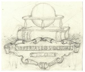 Mappamondo e libro (disegno preparatorio per la marca della Libreria Olschki di Firenze)