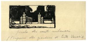 Ingresso dei giardini di Porta Venezia (disegno preparatorio per il finalino di Canti milanesi)