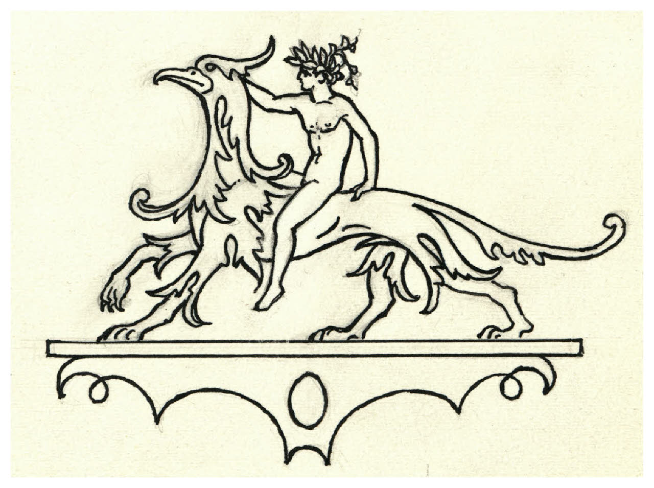 Uomo a cavallo di un grifone. Studio per finalino di Carlo Querceto, L'anima e il giorno, Bologna, Cappelli, 1932