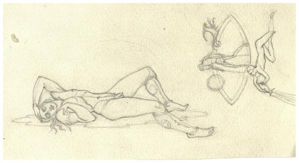 Nudo maschile (disegno preparatorio per la figura di Marte nell'acquaforte, mai realizzata, Il Pianeta Marte); Bozzetto per l'acquaforte, mai realizzata, il Pianeta Saturno