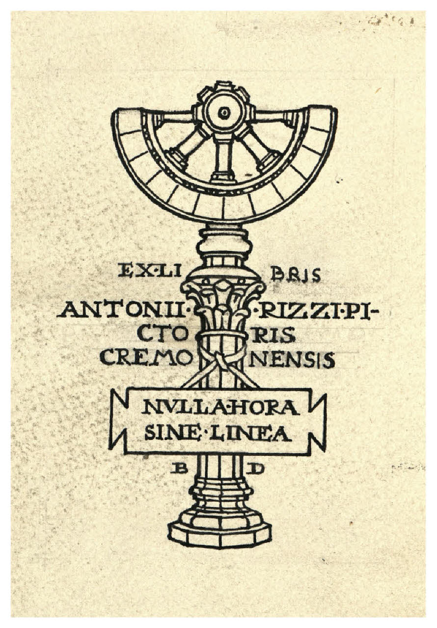 - NOTIZIE STORICO CRITICHE Disegno preparatorio per l'ex libris silografico per l'amico pittore Antonio Rizzi (Bellini-Alberti 128).\n