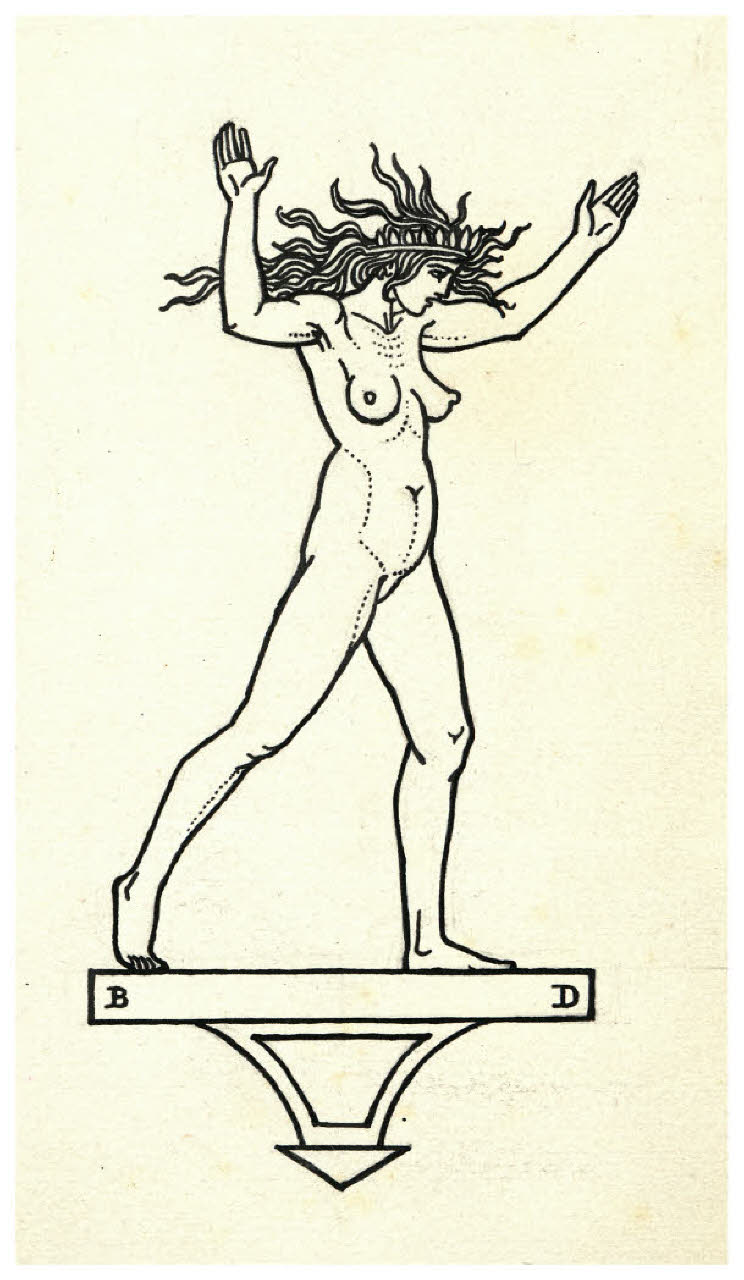 Studio di figura femminile con le braccia alzate che avanza. Disegno preparatorio per Gian Francesco Malipiero, Ecuba: tragedia in tre atti da Euripide, Milano, Suvini Zerboni, 1940 (?)