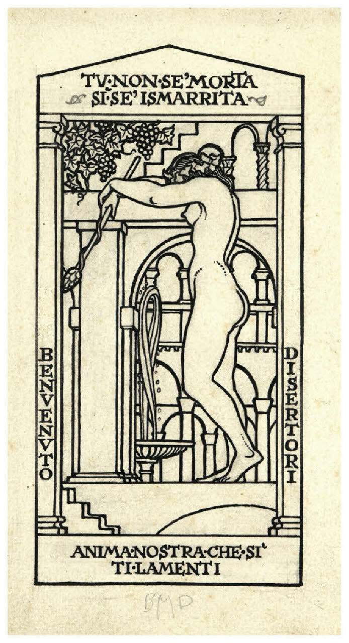 Nudo femminile - Tu non se' morta si sei smarrita anima nostra che sì ti lamenti (disegno preparatorio per l'ex libris per Benvenuto Disertori)