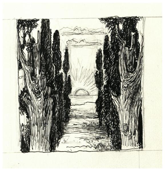 Viale di cipressi e sole