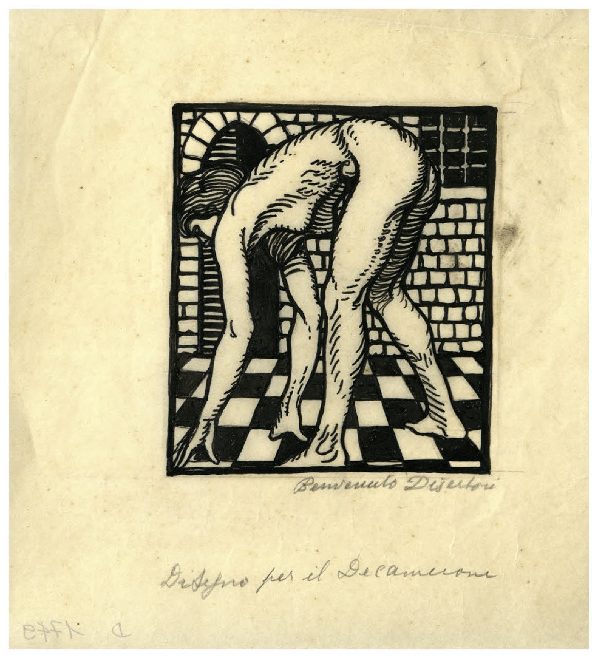 Disegno preparatorio per illustrazione silografica del Decamerone, Giornata IX-Emilia: novella decima