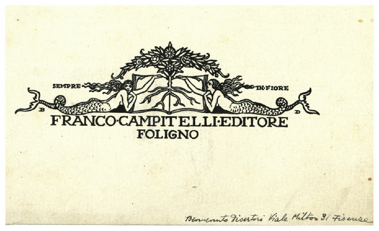 Albero in fiore e due sirene - Sempre in fiore. Disegno preparatorio per la marca dell'editore Franco Campitelli di Foligno