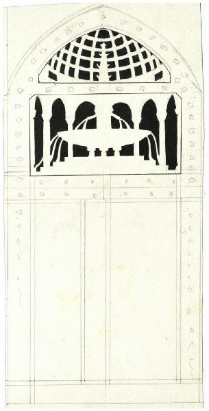 - NOTIZIE STORICO CRITICHE Come altri fogli conservati nel Fondo Disertori del Gabinetto dei Disegni del Castello Sforzesco di Milano, questo disegno sembra riconducibile ad un progetto per un cofanetto diverso da quello, meglio conosciuto, che aveva elaborato nel 1911 per amore di Giovanna. Il tema è quello della melanconia e delle acque che scorrono come essa, in eterno: da qui la scelta iconografica del motivo della fontana. \nIl progetto non sembra ancorabile, al momento, ad un preciso momento del percorso artistico di Disertori.