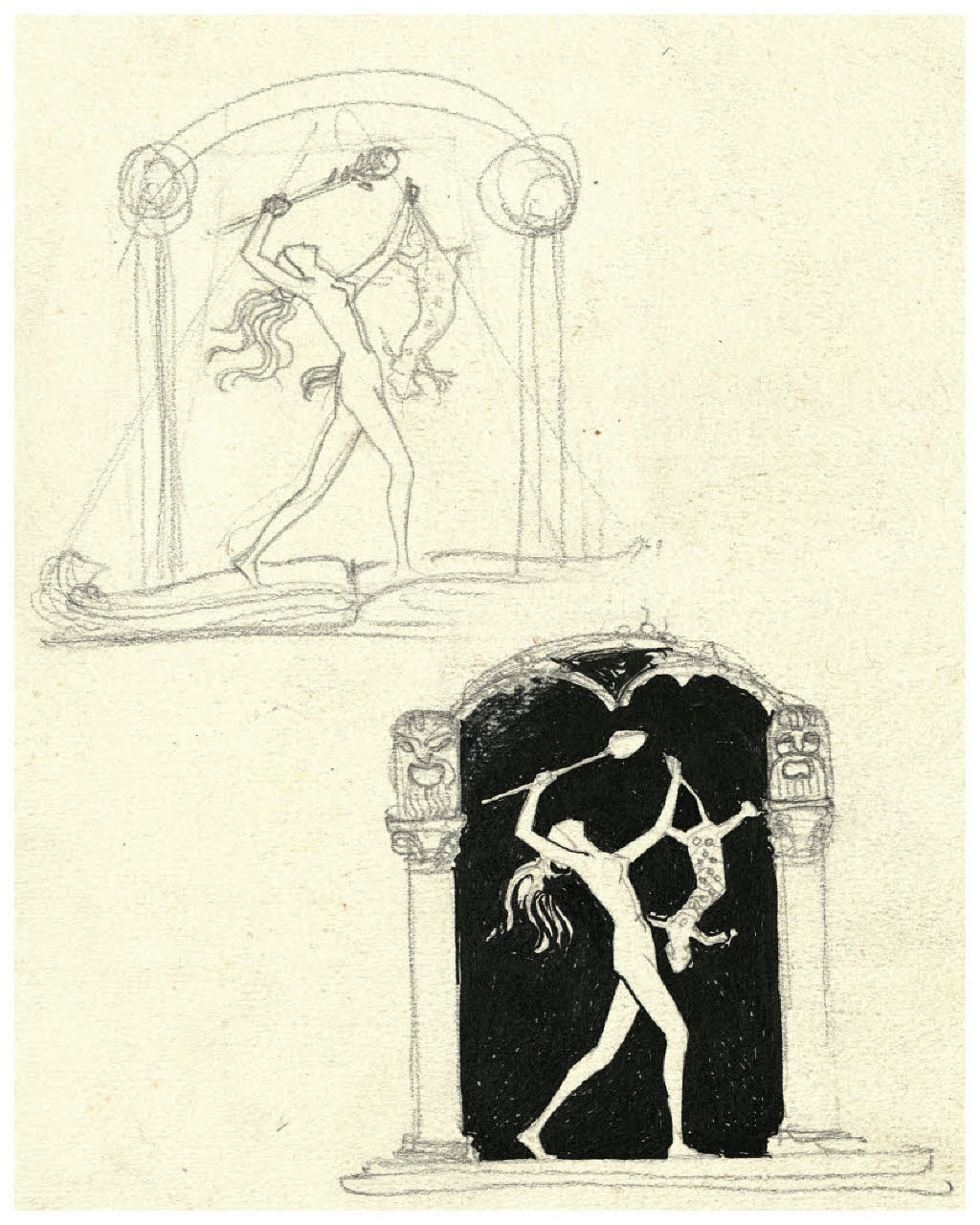 Figura all'antica. Disegno preparatorio per la copertina di A. Antoine, I miei ricordi sul teatro libero, Roma-Milano, Mondadori, 1923