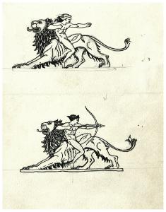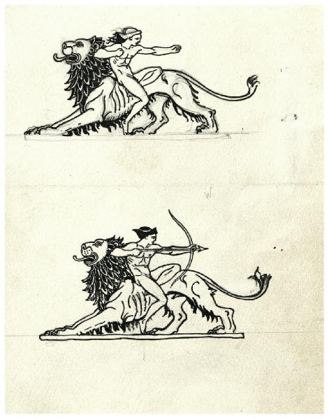 Arciere a cavallo di un leone (disegno preparatorio per la copertina di Giovanni Papini, Prose morali, Milano, Mondadori, 1959)