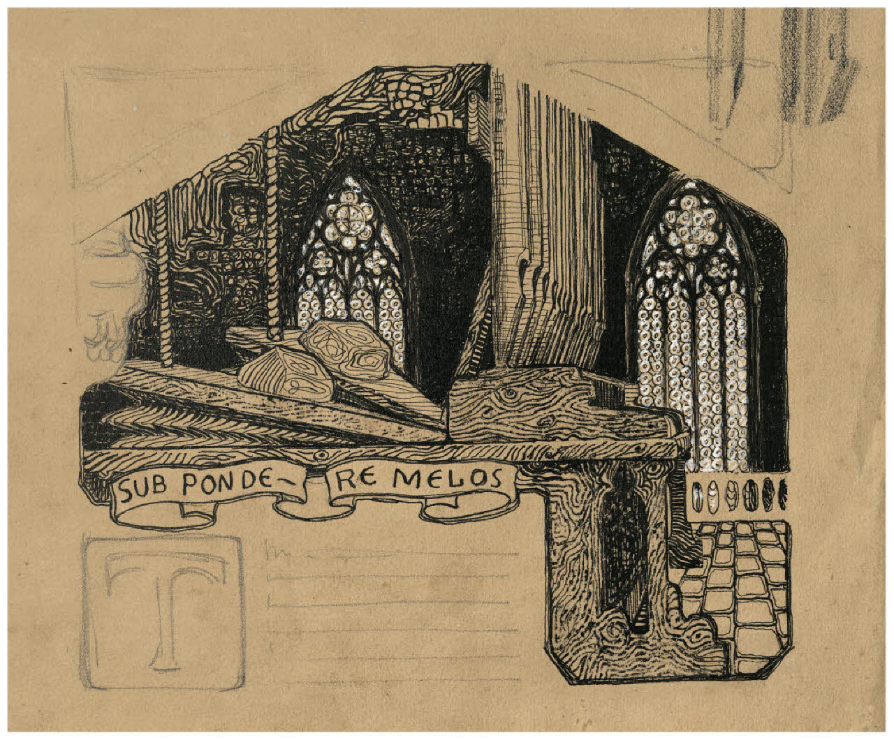 Interno di chiesa con un organo - Sub pondere melos; iniziale T