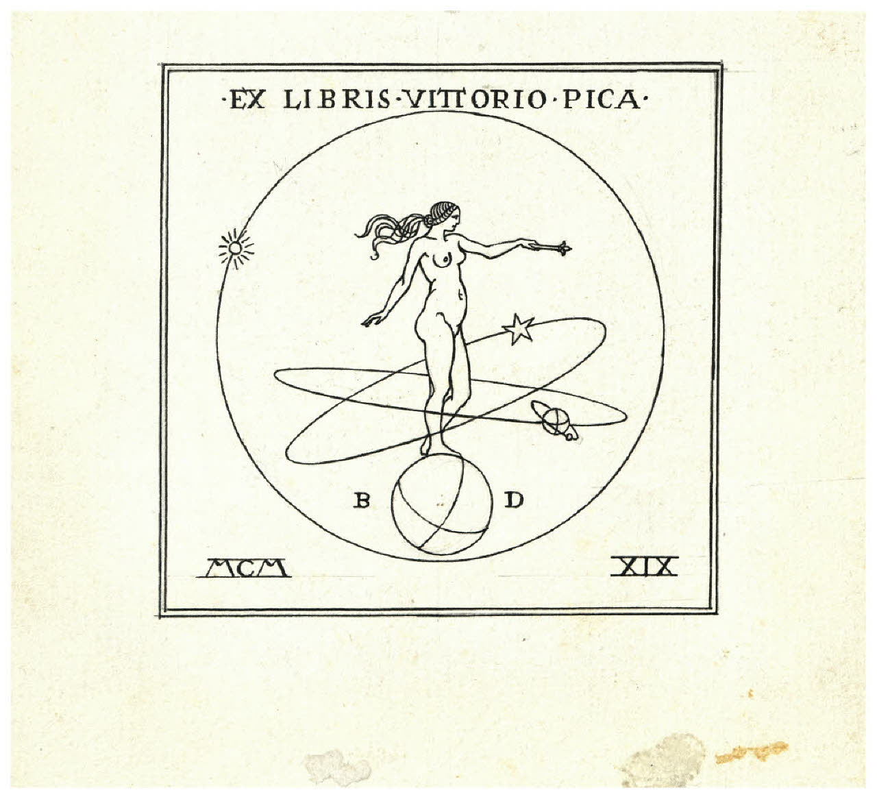 - NOTIZIE STORICO CRITICHE Disegno preparatorio per l'ex libris per Vittorio Pica (Bellini-Alberti 107).\n