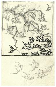 Ramo con foglie cadenti. Studio per illustrazione