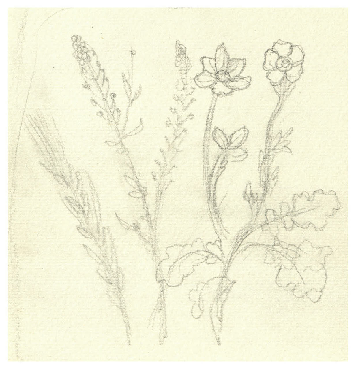 Studi di fiori e spiga di grano