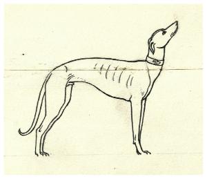 Levriero. Disegno preparatorio per la copertina di Gabriele D'Annunzio, Prose di ricerca, Milano, Mondadori, 1947