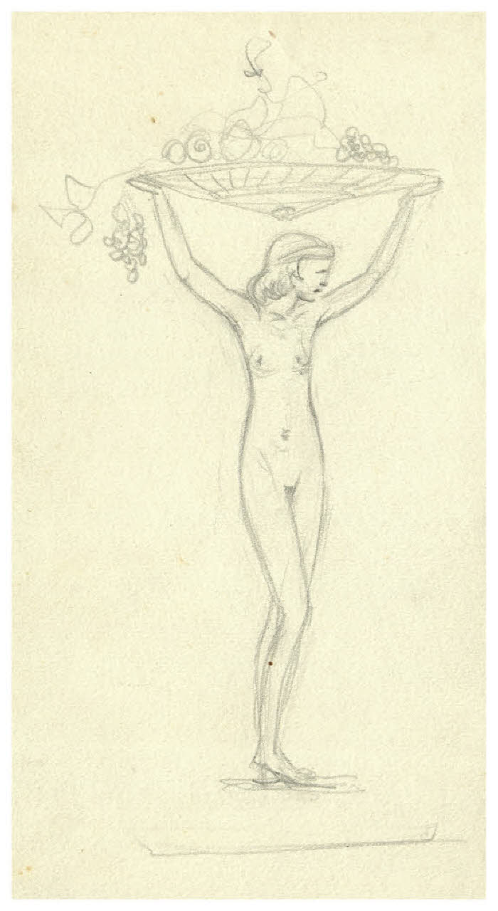 Nudo femminile che porta sul capo un cesto di frutta