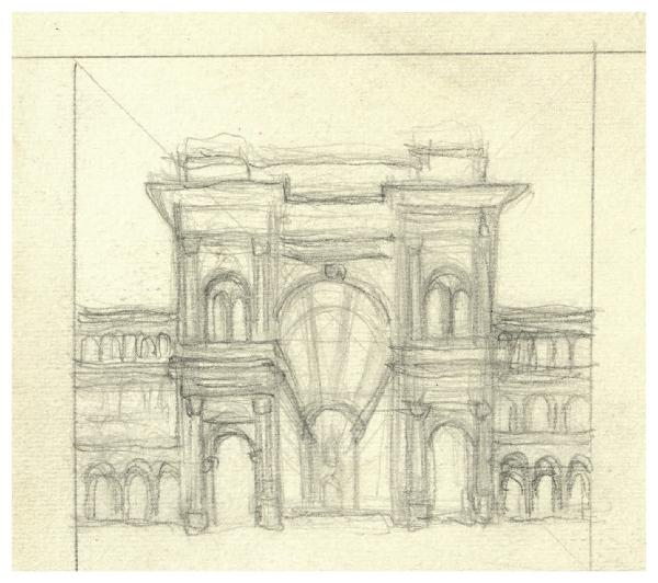 Galleria Vittorio Emanuele II a Milano. Disegno preparatorio per la sovraccoperta di Emilio De Marchi, Tutte le opere. 2: Grandi romanzi, Milano, Mondadori, 1960