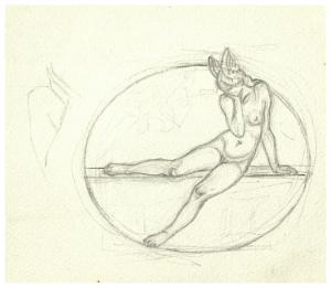 Nudo femminile seduto con le ali al capo