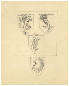 Studi di stemmi con animali rampanti. Disegno preparatorio per la copertina di Giovanni Pascoli, Prose, Milano, Mondadori, 1952 (?)