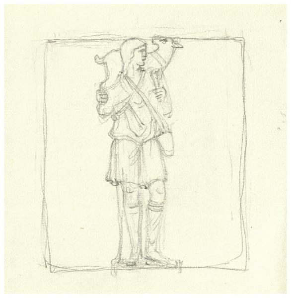 Pastore con pecora sulle spalle. Disegno preparatorio per la copertina di Giovanni Pascoli, Carmina, Milano, Mondadori, 1951