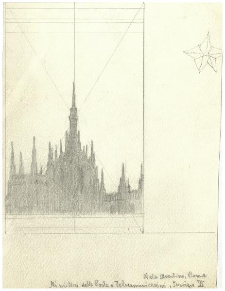 Duomo di Milano. Bozzetto di francobollo commemorativo della II Guerra di Indipendenza