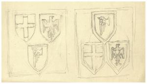 Stemmi con animali rampanti. Disegno preparatorio per la copertina di Giovanni Pascoli, Prose, Milano, Mondadori, 1952