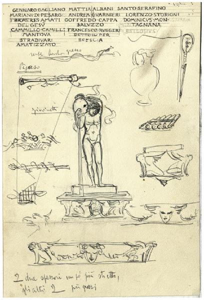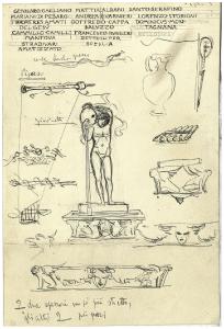 Studi diversi; Nudo maschile con un'anfora (disegno preparatorio per la copertina di Carlo Querceto, L'anima e il giorno, Bologna, Cappelli, 1932)