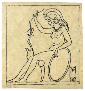 Minerva seduta. Disegno preparatorio per la copertina di Giovanni Pascoli, Poesie, Milano, Mondadori, 1939