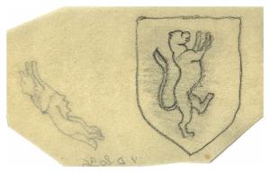 Stemma con felino rampante. Disegno preparatorio per la copertina di Giovanni Pascoli, Prose, Milano, Mondadori, 1952