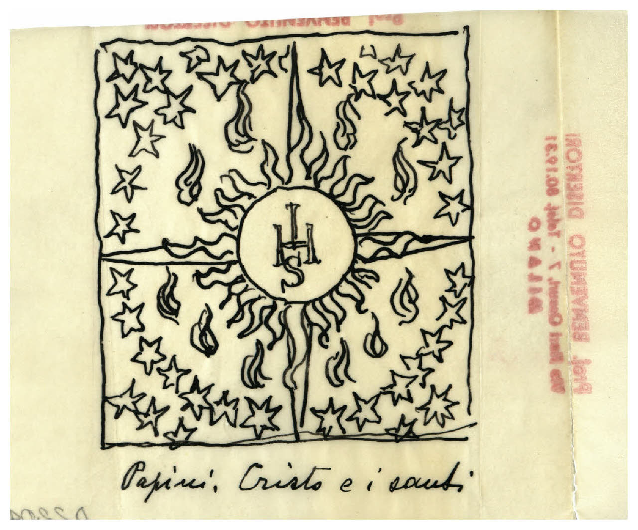 Trigramma di Cristo. Disegno preparatorio per Giovanni Papini, Tutte le opere: 5. Cristo e santi, Milano, Mondadori, 1962