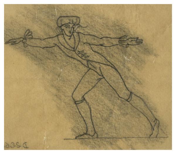 Figura maschile in costume. Disegno preparatorio per la copertina di Goffredo Petrassi, Il cordovano, Milano, Suvini Zerboni, 1948