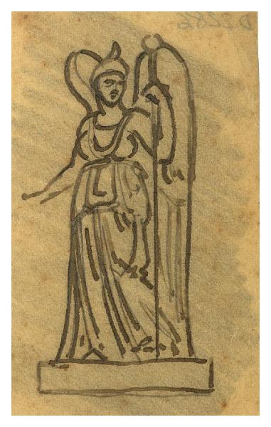 Figura femminile alata con insegna romana. Studio per illustrazione