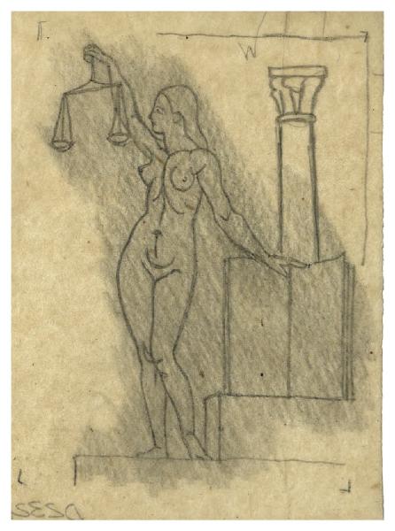 La Giustizia. Disegno preparatorio per l'ex libris per Mansueto Fenini, Unicuique sua metitur