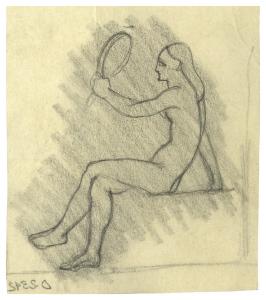 Donna seduta che tiene in mano uno specchio (studio di copertina o illustrazione di Papini, Scritti filosofici)