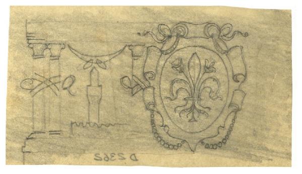 Fregio con Palazzo della Signoria e stemma della città di Firenze. Disegno preparatorio per un'illustrazione