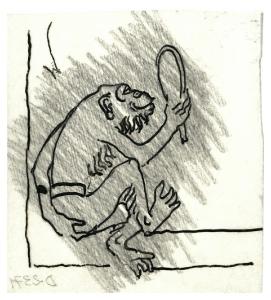 Scimmia con uno specchio. Studio per illustrazione