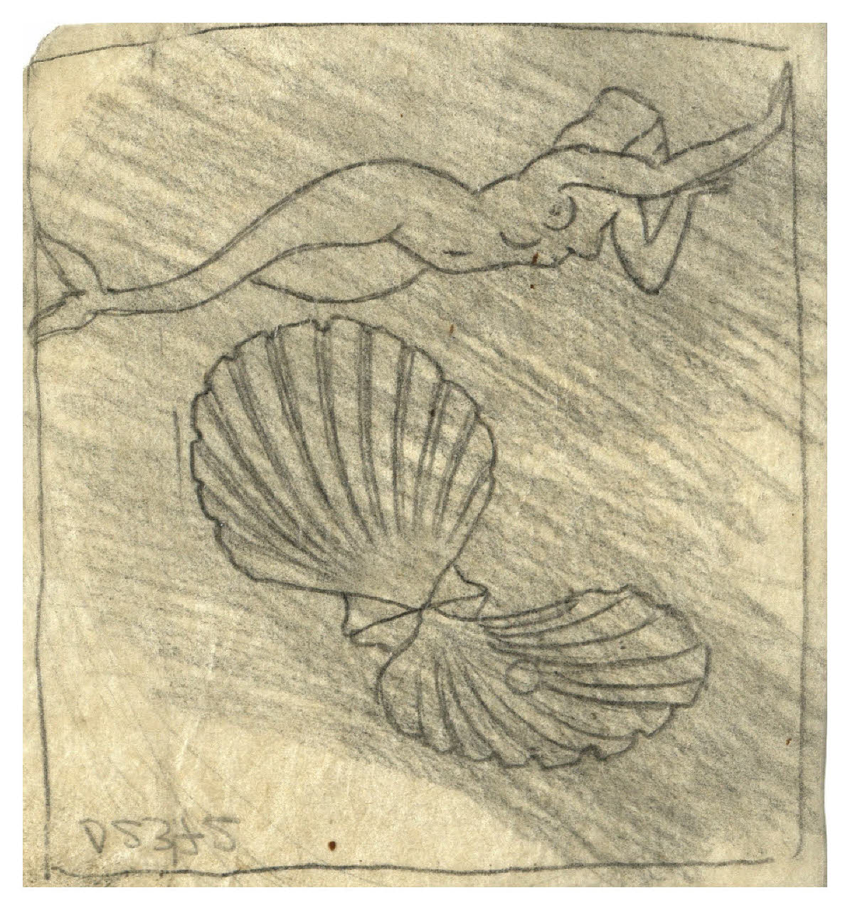Perla e sirena. Progetto per ex libris, non realizzato, per Mansueto Fenini