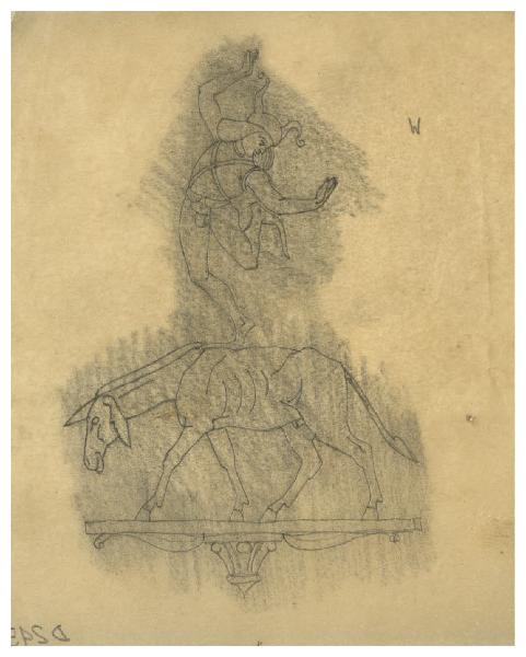 Giullare in piedi sopra un asino. Studio per illustrazione