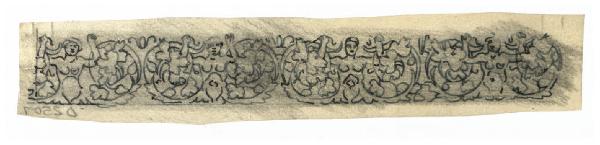 Fregio a girali e figure mitologiche. Disegno preparatorio per una cornice di menu