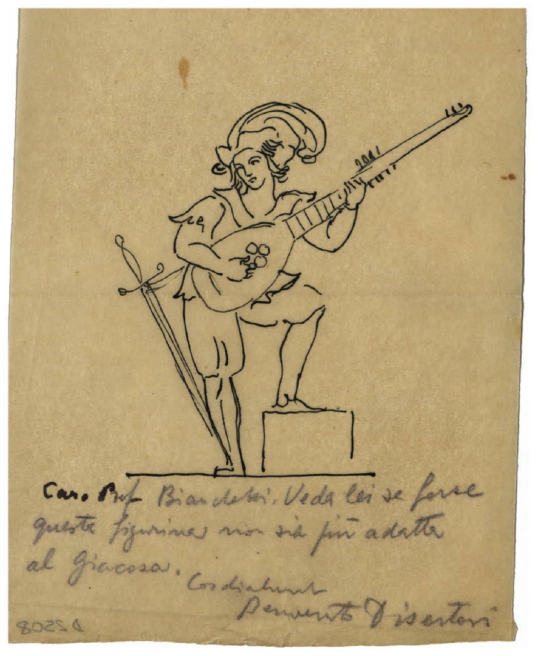 Paggio liutista (disegno preparatorio per la copertina di Giuseppe Giacosa, Teatro, Milano, Mondadori, 1948)