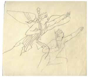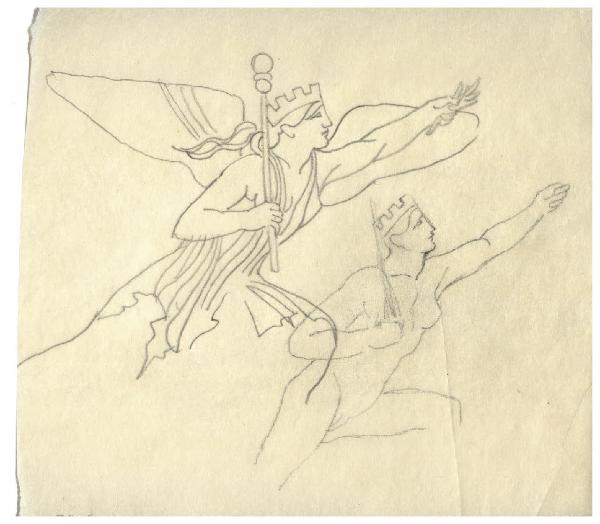 Doppio studio di figura allegorica in volo. Disegno preparatorio per francobollo commemorativo della II Guerra di Indipendenza