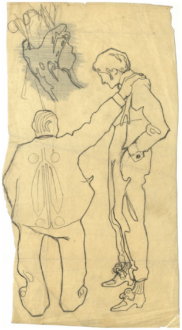 Due figure maschili e studio di mano