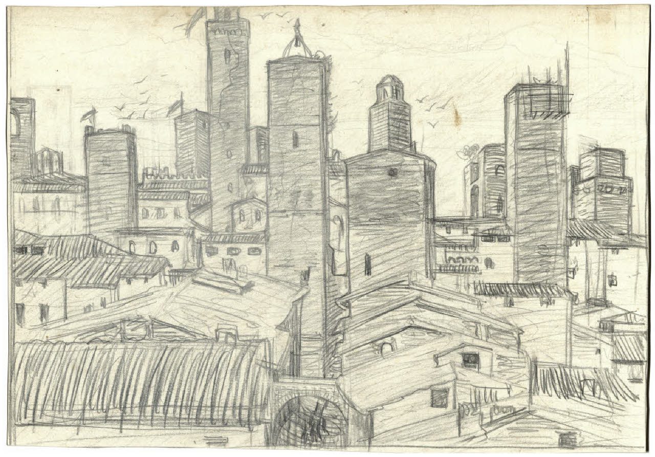 Torri di San Gimignano (disegno preparatorio per l'acquaforte). Veduta di San Gimignano
