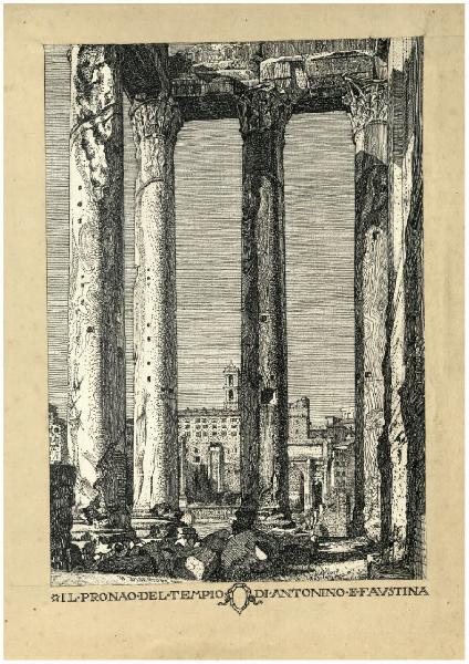 Il pronao del Tempio di Antonino e Faustina (disegno preparatorio per l'acquaforte)