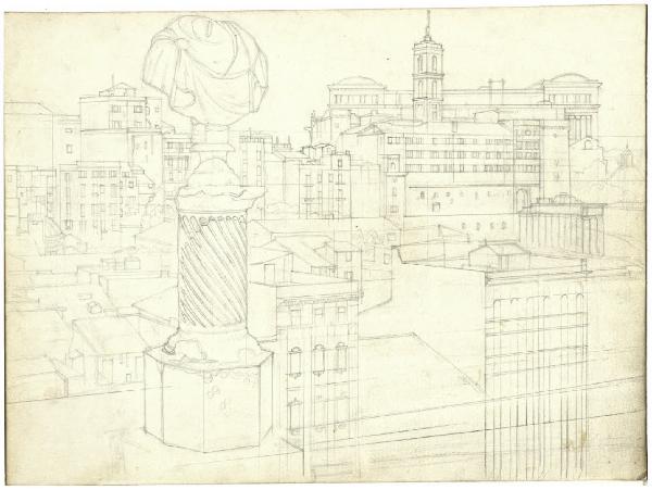 Roma. Veduta del Monte Capitolino dagli Orti Farnesiani (disegno preparatorio l'acquaforte)
