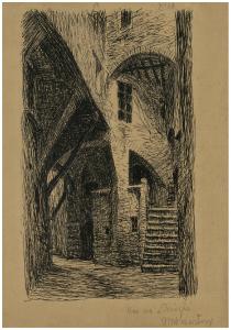 - NOTIZIE STORICO CRITICHE Disegno preparatorio per l'acquaforte La via Ritorta a Perugia (Bellini-Alberti 12). L'opera è citata in una lista dei lavori di Disertori fino al 1917 che l'artista ha registrato in un Album del Fondo Disertori al Gabinetto dei Disegni (FD Album 10, 6): in questo caso però l'incisore non ha precisato l'anno di esecuzione: IIII. Perugia. Via Ritorta. Schizzo.\n