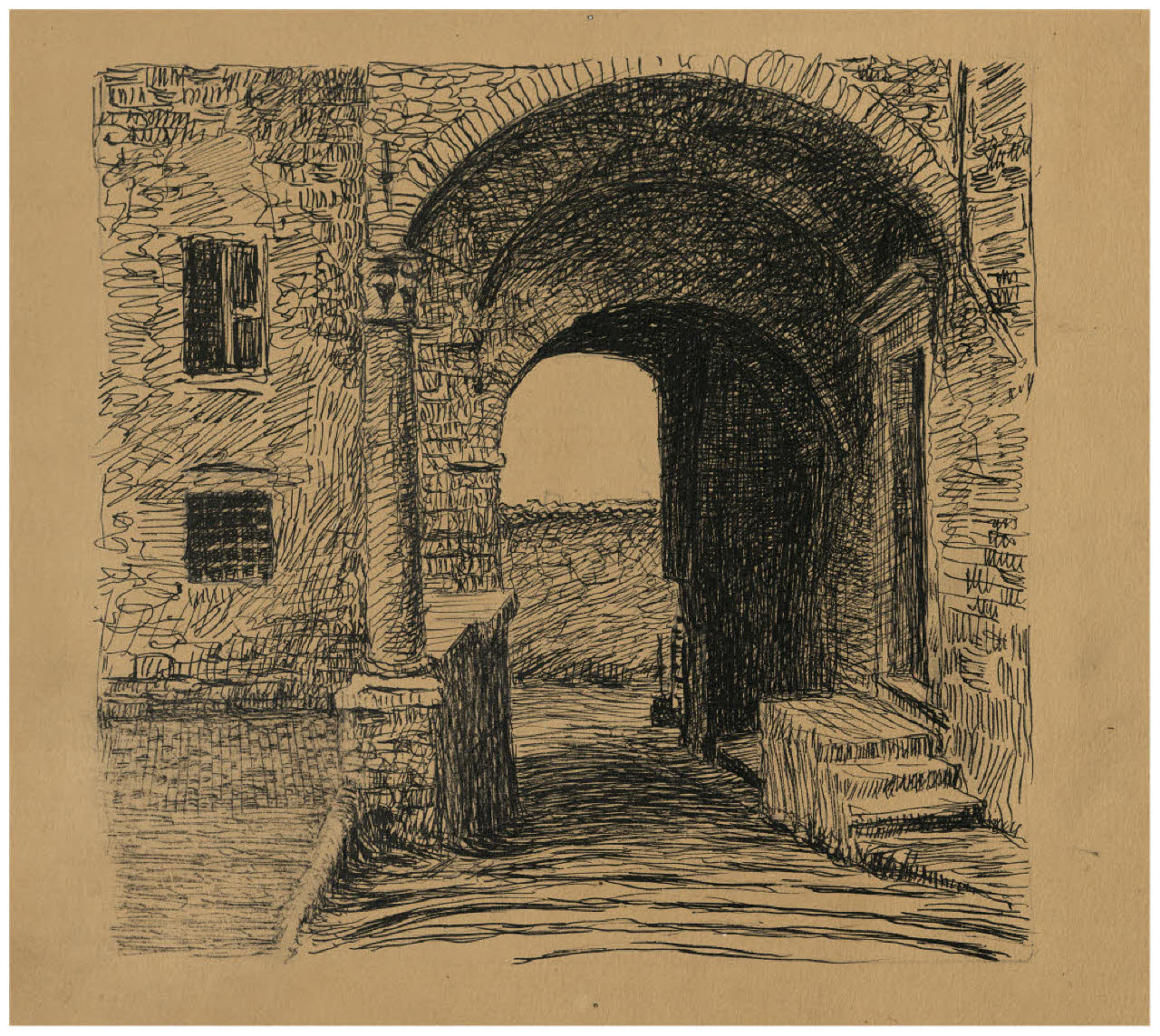 Via del Bufalo, Perugia (disegno preparatorio per l'acquaforte)