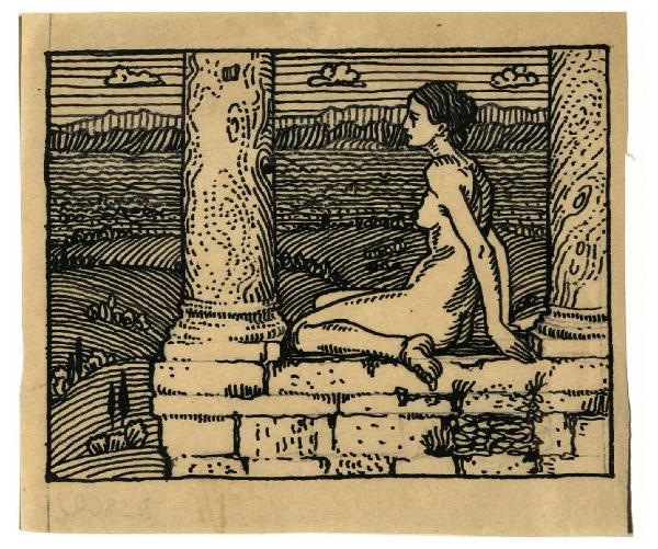 Nudo femminile seduto tra le colonne di un tempio (disegno preparatorio per un ex libris per Ezio Pietro Pogliani)