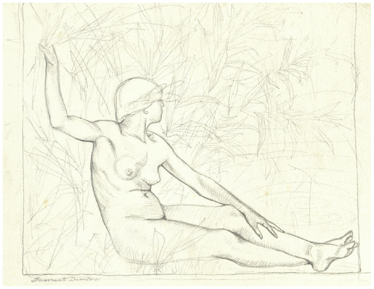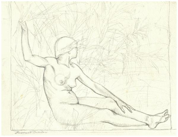 Nudo femminile seduto in un giardino