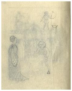Disegno preparatorio per illustrazione silografica del Decamerone, Giornata IX-Emilia: novella quinta