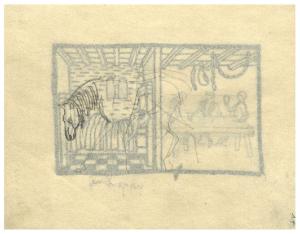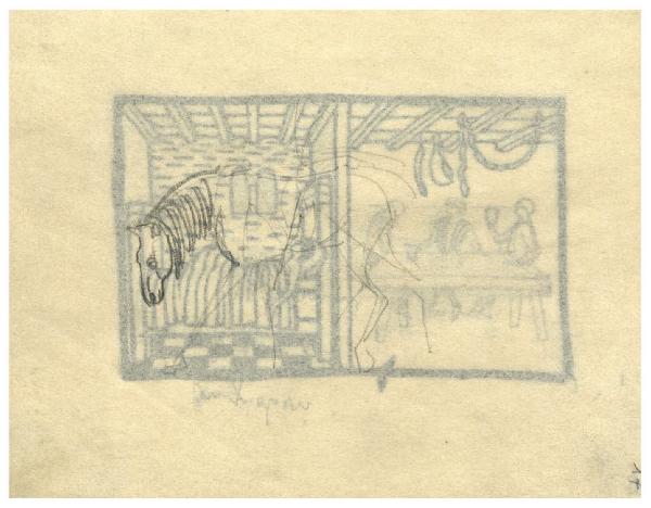 - NOTIZIE STORICO CRITICHE L'album nel quale è contenuto questo disegno è riconducibile, con poche eccezioni, al progetto per l'illustrazione, in xilografia, della Giornata IX del Decamerone di Boccaccio per l'edizione Formiggini del 1916 (collana "I Classici del Ridere"). La sua datazione è riferibile pertanto al 1913-14, quando Disertori avrebbe iniziato a studiare per queste incisioni. Alle carte 2 recto e 2 verso è vergata una lunga annotazione autobiografica dell'artista (forse successiva ai disegni), che ricorda le difficoltà economiche conosciute "in questi anni dal 1914 in poi".